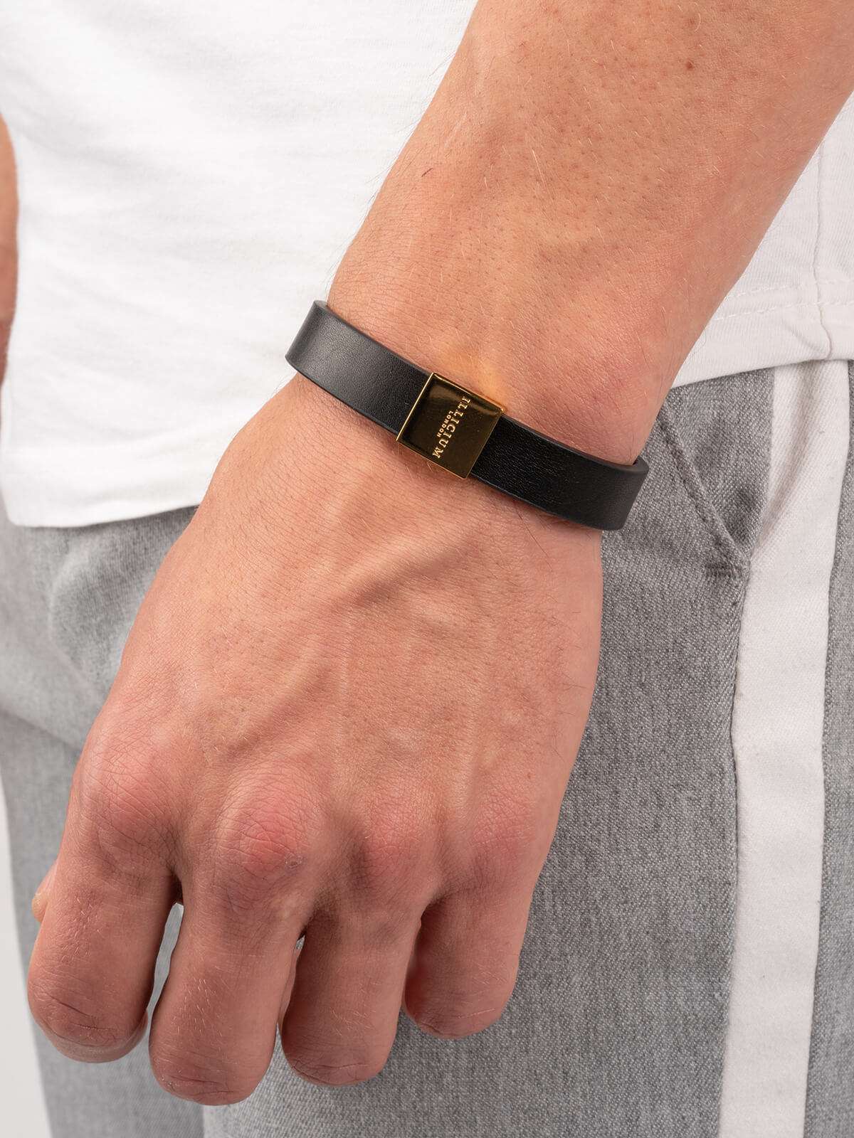 Home > Leather Goods Shop > Black Gold Kingshood Leather Bracelet