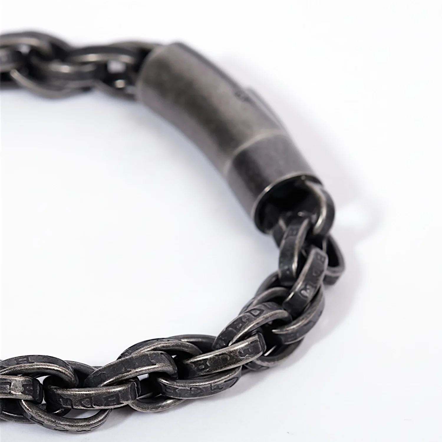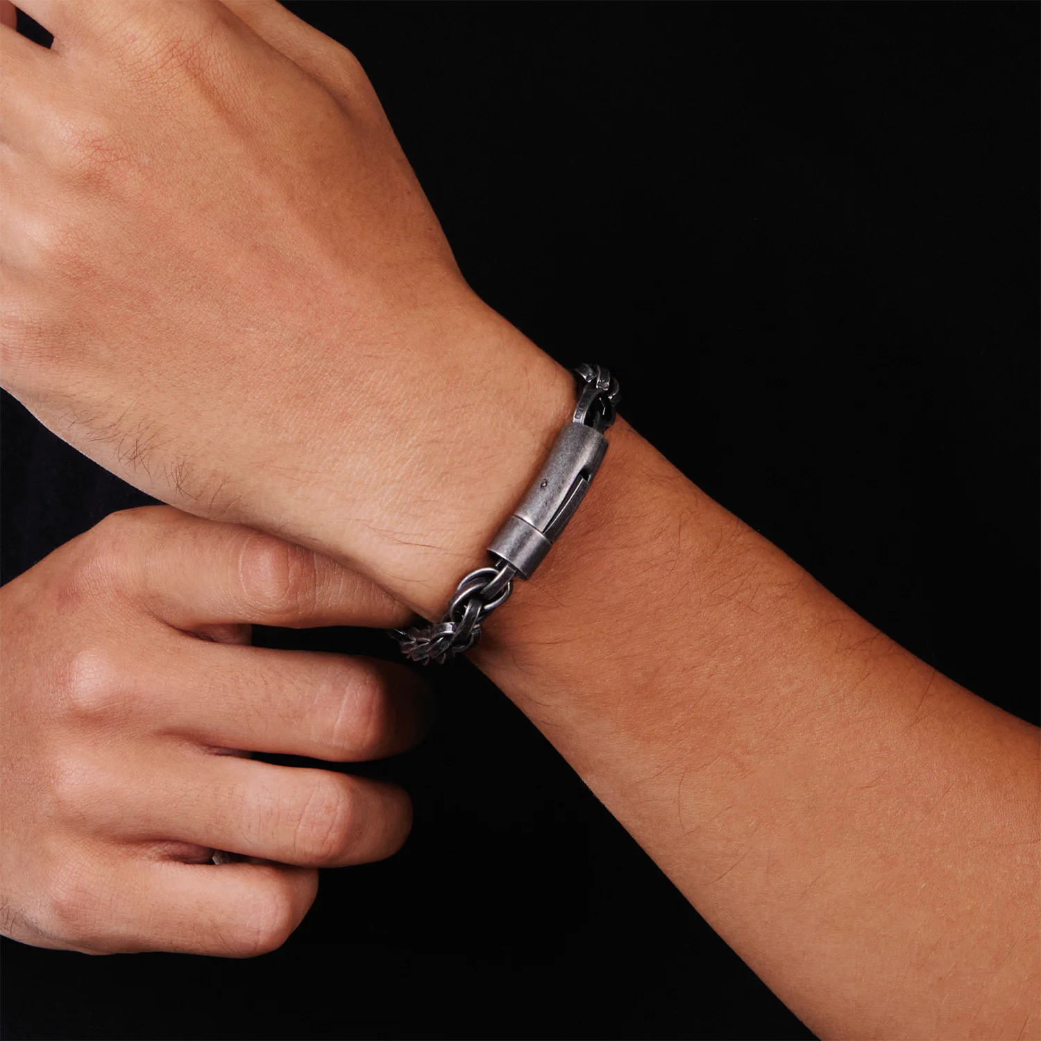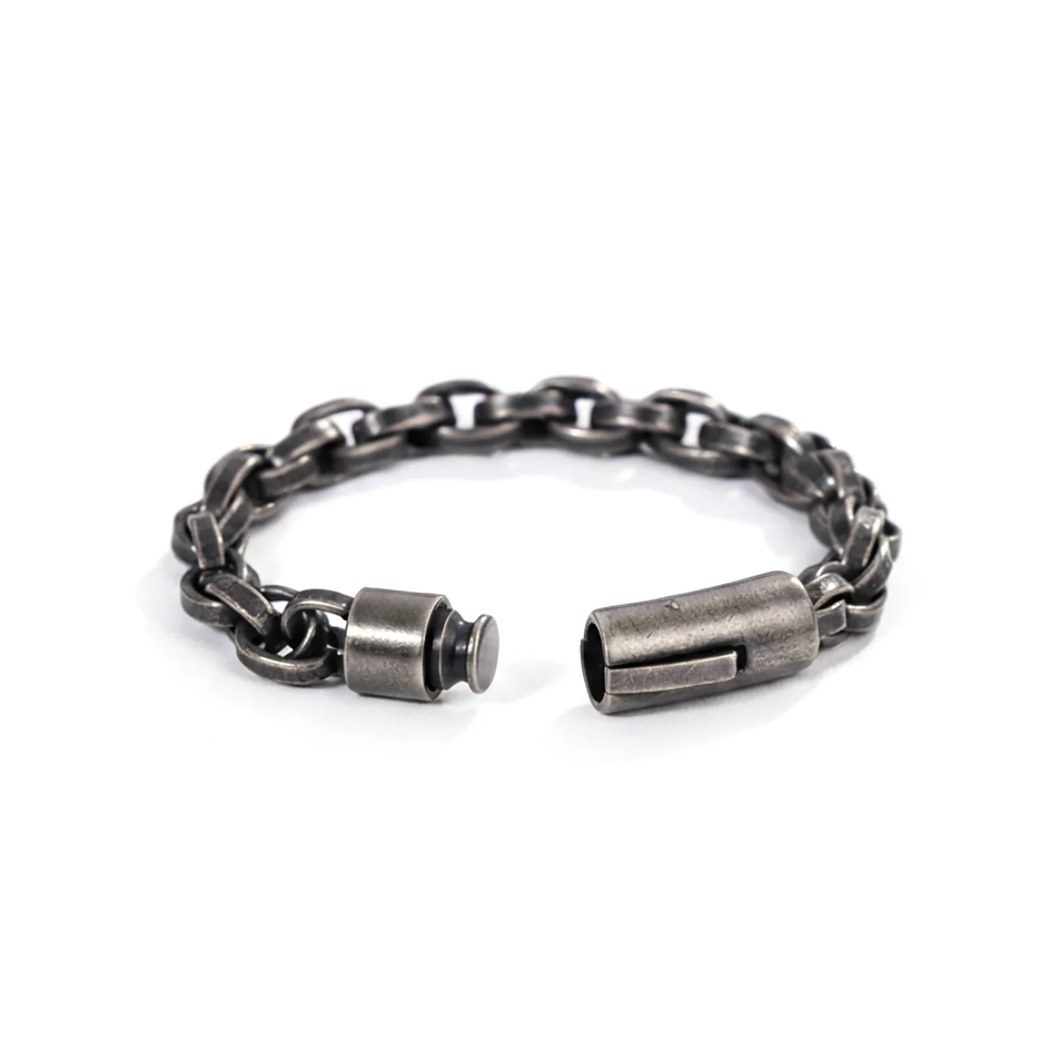 Designed for effortless versatility, it layers cleanly with a watch or stacks beside cuffs without snagging sleeves. The tight oval links give the rugged link bracelet for men a refined cadence, balancing minimalist design with character-rich texture. Whether you’re dressing sharp or off-duty, this blackened stainless steel bracelet adds depth, grit, and heritage to your rotation—built for everyday durability and timeless appeal.