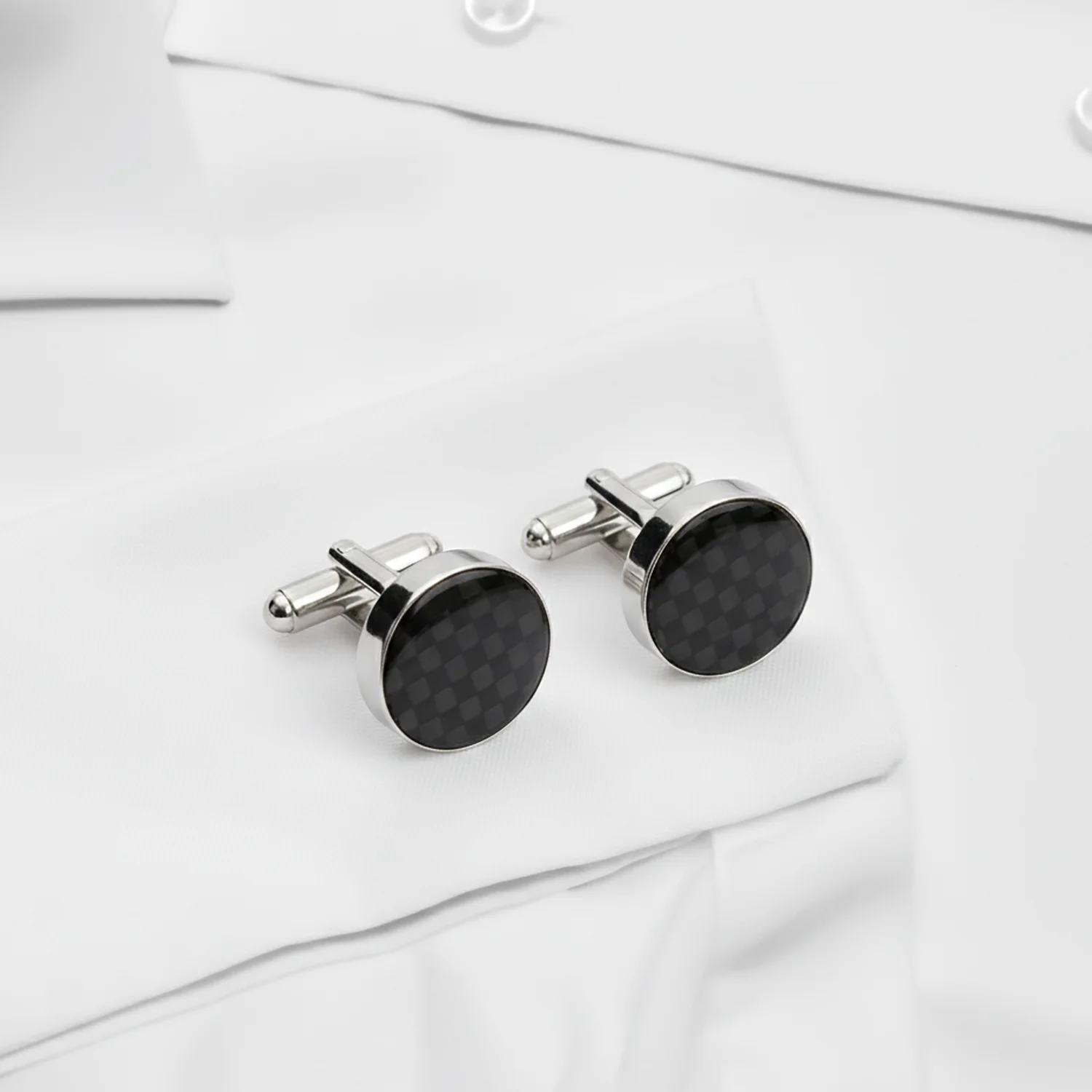 Bring precision and performance to formalwear with our Carbon-Fibre Cufflinks. The distinctive checker-weave carbon-fibre inlay delivers a technical, graphite sheen, framed by a mirror-polished stainless-steel bezel for crisp contrast. Lightweight yet robust, the rounded profile sits neatly against the cuff, while a smooth whale-back fastening offers quick, secure wear from boardroom to evening event.