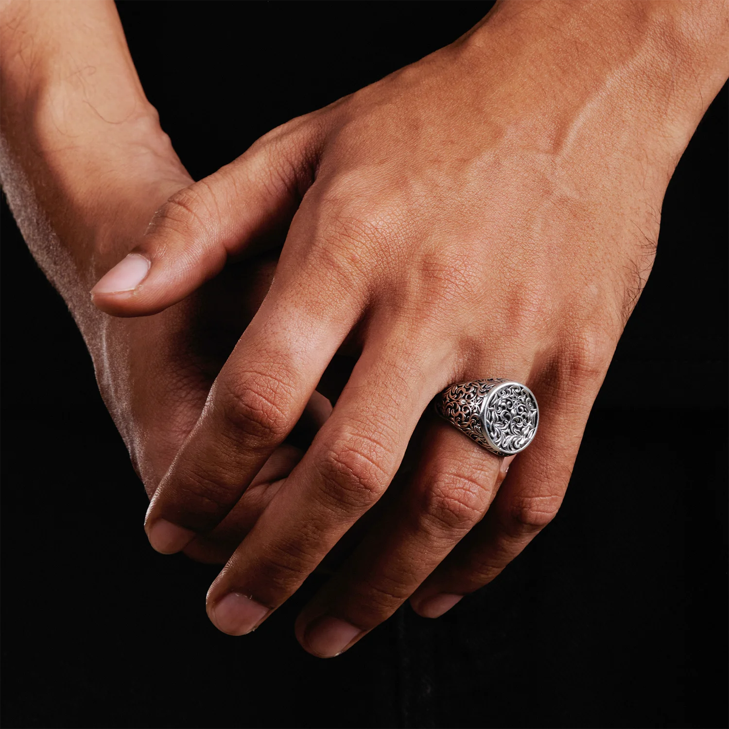 Whether worn as a signature everyday ring or paired with chains and cuffs, this 925 sterling silver signet ring delivers heritage character with contemporary precision. Presented our premium gift packaging, it’s an elevated mens gift for those who appreciate ornate craftsmanship and long-lasting materials.