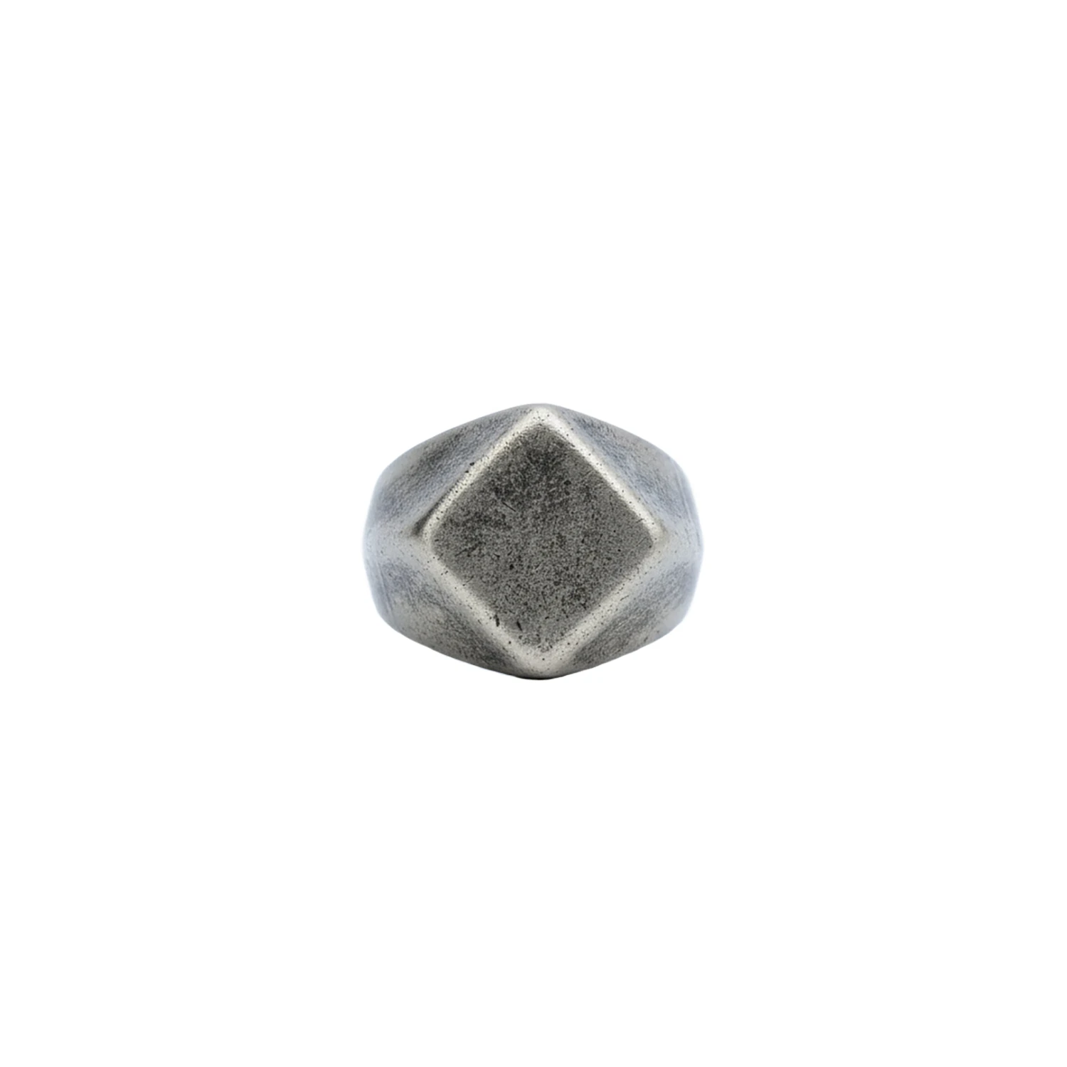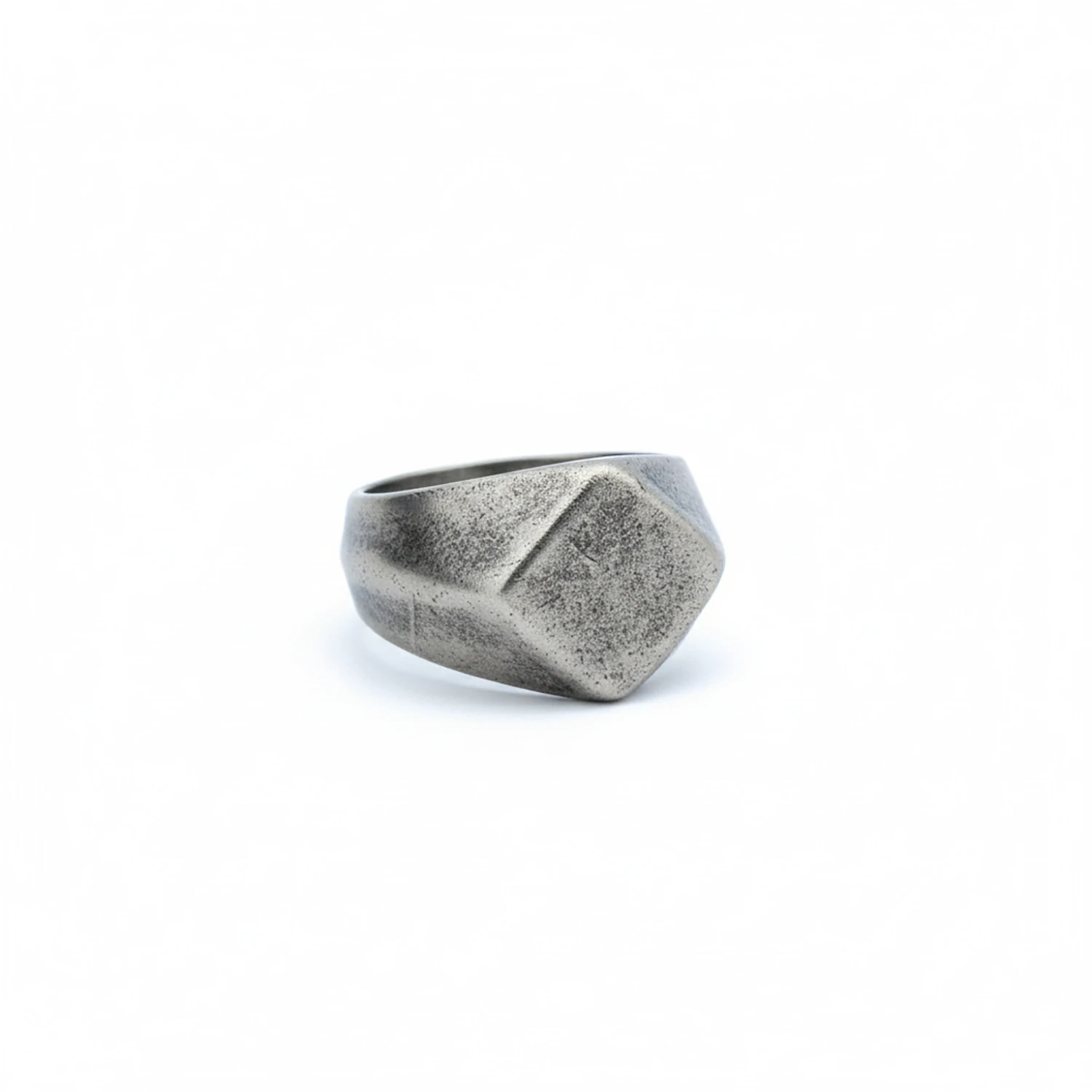 This is a faceted signet ring for men who prefer restraint: bold geometry, disciplined lines, and a tactile surface that reads as stone, steel, and sculpture at once. Stack it beside a wedding band, wear it solo as a statement ring, or pair it with a silver chain for a sharper silhouette.