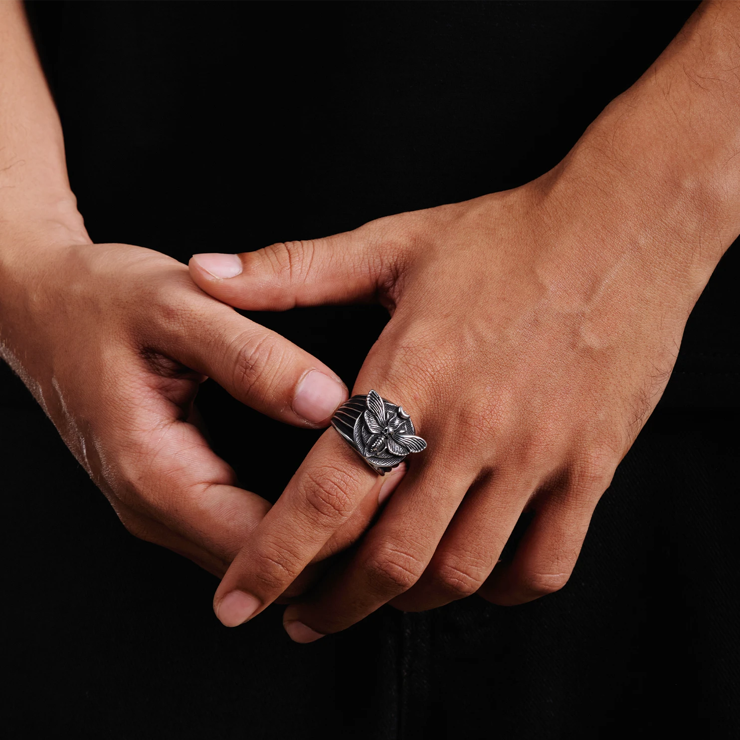 Crafted from 316L stainless steel, the Death’s Head Silver Moth Ring for men is resistant, low-maintenance, and made to keep its definition through daily wear. It’s the kind of piece that doesn’t chase attention – yet always gets it.