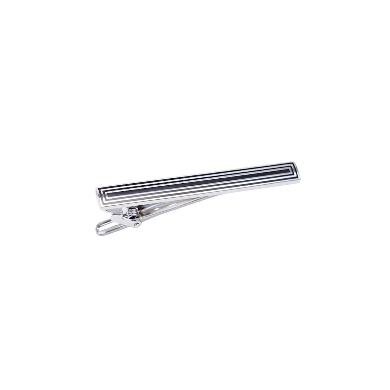 The Onyx Portal is a slender silver tie clip hand crafted from marine-grade 316L stainless steel. Black enamel channels trace a stepped frame across the bar, giving calm, architectural definition. A tensioned clasp secures silk or wool without bruising the weave. Hypoallergenic, water-resistant and colour-true, this men’s luxury tie clip completes business, wedding and black-tie attire with understated yet measured poise.